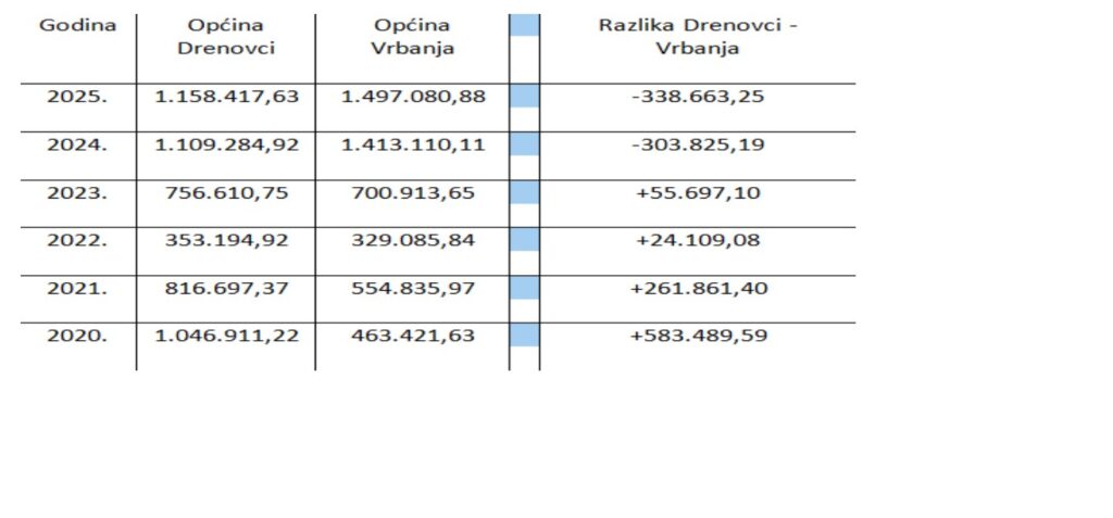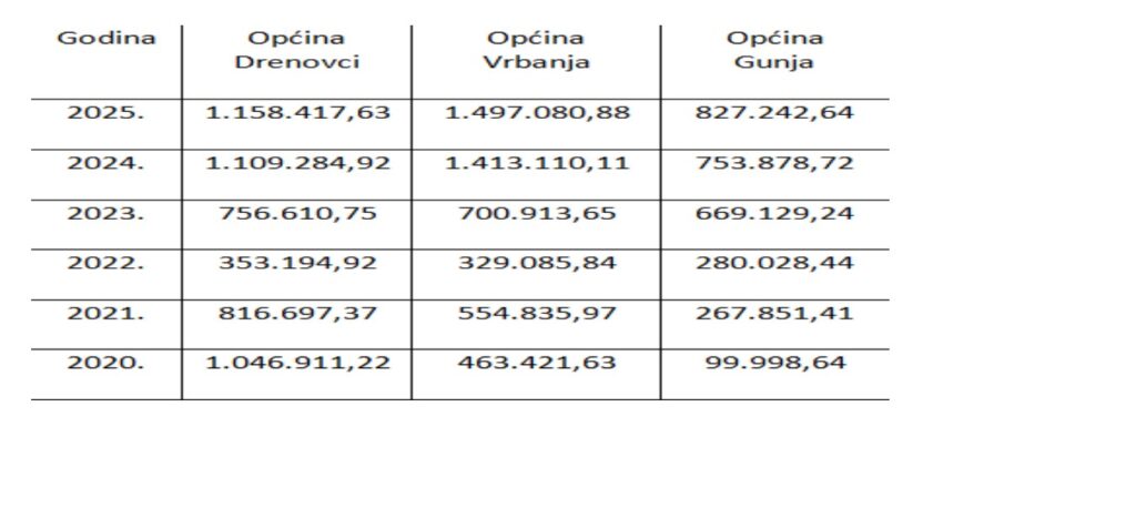 Podaci to potvrđuju. Dok je Općina Drenovci donedavno prednjačila u povlačenju sredstava, u posljednje dvije godine gubi korak. Istodobno, Općina Gunja kontinuirano zaostaje – trend koji traje još od osnutka općina 1993. godine.